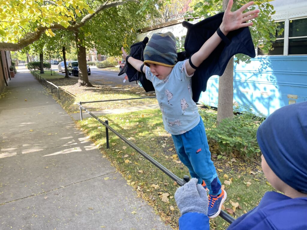 Nous sommes revenus à la Tortue de bonne humeur. Clovis a même trouvé de magnifiques ailes de chauve-souris qu’il arborera comme déguisement d’Halloween. Oui! parce qu’entretemps, nous avons trouvé un quartier de la ville où passer l’Halloween et la récolte des bonbons : direction Hyde Park entre la 55e et la 63rd. Nous avons donc déplacé la Tortue vers cet endroit en début d’après-midi question de s’y préparer pour les festivités. Un dîner pizza dans un parc, quelques dernières courses pour les accessoires et retour au bus stationné dans le quartier résidentiel. En plein préparatifs, notre premier « knock » depuis notre départ. Un homme déguisé en policier nous explique qu’il est inhabituel d’y voir des bus stationnés dans une si étroite rue, sens unique de surcroît, et que certains appels commencent déjà à entrer. Demeurer à cet endroit, pour la nuit, vient de tomber dans la colonne des impossibles. L’homme déguisé en policier, courtois et sympathique, nous informe qu’il y a un stationnement à un demi-mile de là. Nous décidons d’y élire résidence pour la soirée et verrons pour la suite. Il est 17h et la collecte de bonbons débute.