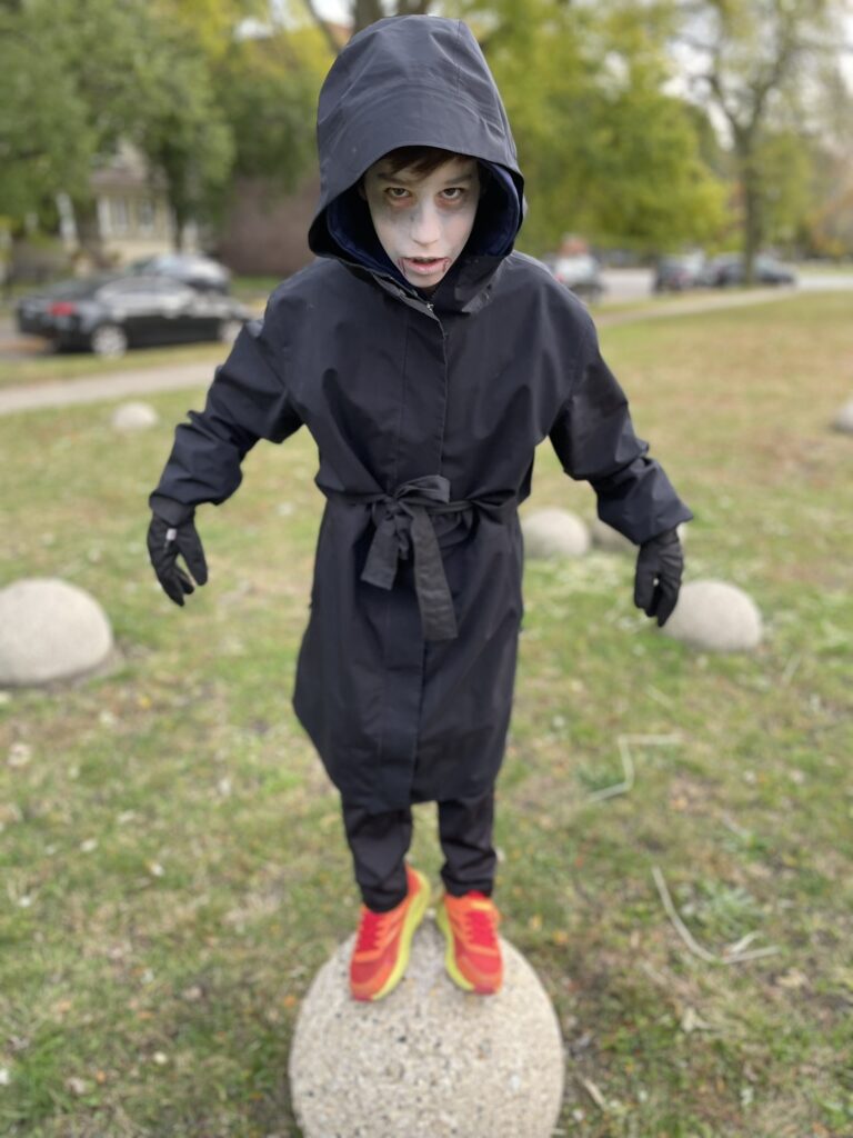 Les enfants nous ont souvent demandé ce qu’on ferait à l’Halloween. Il nous était impossible de leur répondre et ça a créé certains (beaucoup) de moments d’angoisse et d’anxiété. Nous avions gâché leur fête préférée de l’année…
